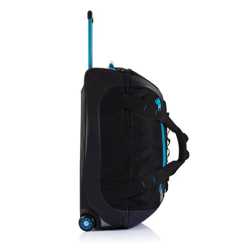 Duża torba sportowa, podróżna na kółkach, wykonana z 600D i 210D ripstop, duża przegroda główna zamykana na zamek błyskawiczny, wiele wewnętrznych kieszeni, w tym odpinana kieszeń siateczkowa, aluminiowy uchwyt, posiada miejsce na wizytówkę właściciela
