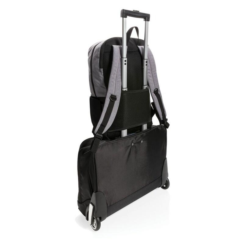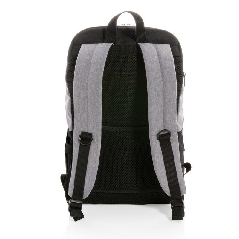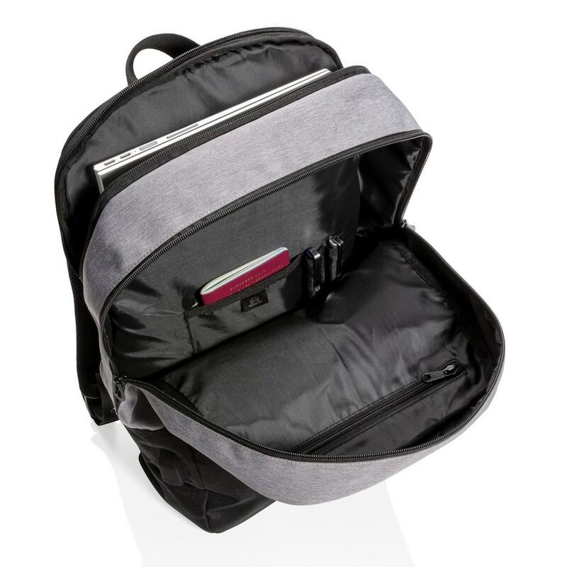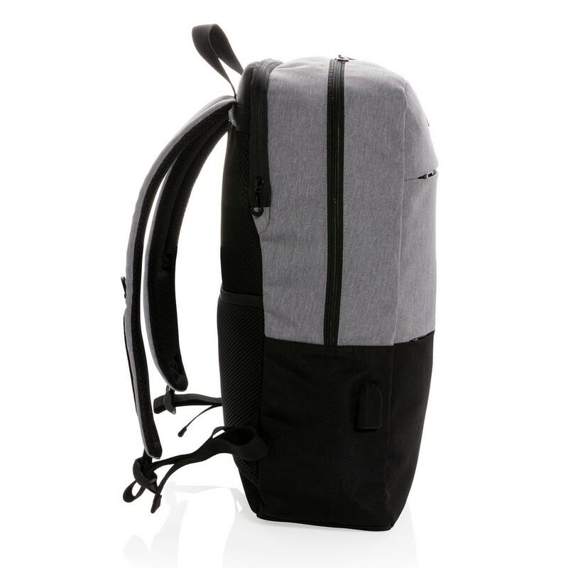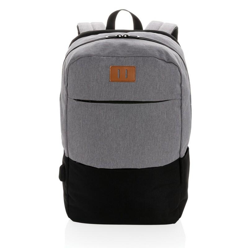 Plecak na laptopa z ochroną RFID, wykonany z wytrzymałej tkaniny, miękka przegroda na laptopa 15,6", kieszeń przednia na akcesoria, kieszeń z ochroną RFID wewnątrz, gniazdo USB do ładowania telefonów (power-bank nie jest dołączony), nie zawiera PVC