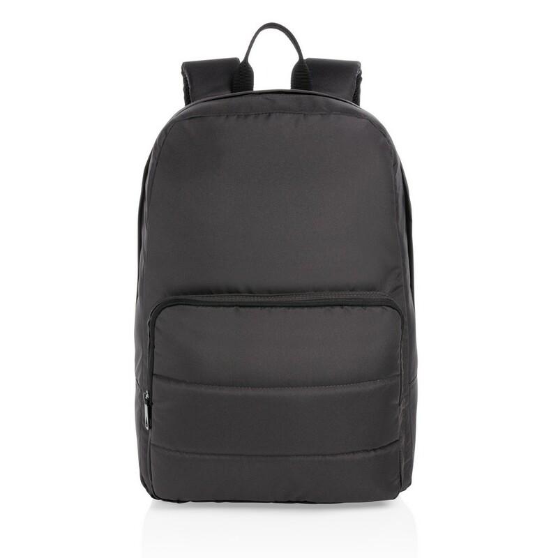 Plecak na laptopa 15,6", przestronna przegroda główna z miejscem na laptopa, wewnątrz kieszeń na drobne akcesoria i pętle na przybory do pisania, kieszeń na zamek z przodu, tkanina zewnętrzna i poszewka wewnętrzna wykonane z pochodzącego z poliestru AWARE™ rPET, który został wykonany z butelek PET pochodzących z recyklingu z identyfikowalnym źródłem co pozwala na zaoszczędzenie dużych ilości wody i ma pozytywny wpływ na środowisko, nie zawiera PVC