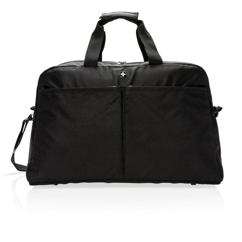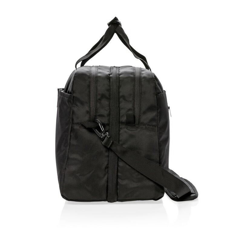 Torba sportowa, podróżna z kieszenią na laptopa 15,6", ochrona RFID, hybrydowa konstrukcja zapewniająca łatwe przenoszenie, wygodny system otwierania i organizowania rzeczy jak walizka, zamykana na zamek błyskawiczny z dostępem do podwójnej przegrody, z tyłu kieszeń na prasę oraz zamykana na zamek kieszeń z ochroną RFID i łatwym dostępem, z przodu 2 duże kieszenie na zamek błyskawiczny, nie zawiera PVC