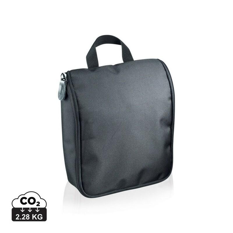 Kosmetyczka, wykonana z poliestru 1680D, posiada 8 przegródek oraz haczyk ze stali nierdzewnej