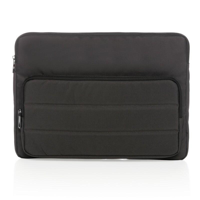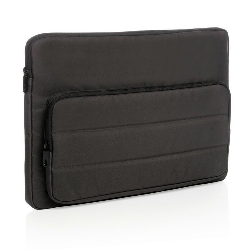 Pokrowiec na laptopa 15,6", w przedniej kieszeni zamykanej na zamek błyskawiczny 2 dodatkowe kieszenie z miejscem na 2 akcesoria piśmiennicze, pokrowca można używać samodzielnie lub umieścić go w torbie lub plecaku, tkanina zewnętrzna i poszewka wewnętrzna wykonane z pochodzącego z poliestru AWARE™ rPET, który został wykonany z butelek PET pochodzących z recyklingu z identyfikowalnym źródłem co pozwala na zaoszczędzenie dużych ilości wody i ma pozytywny wpływ na środowisko, nie zawiera PVC