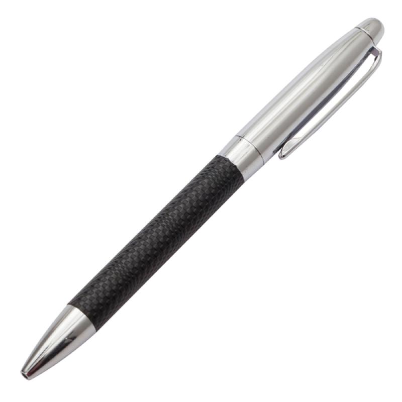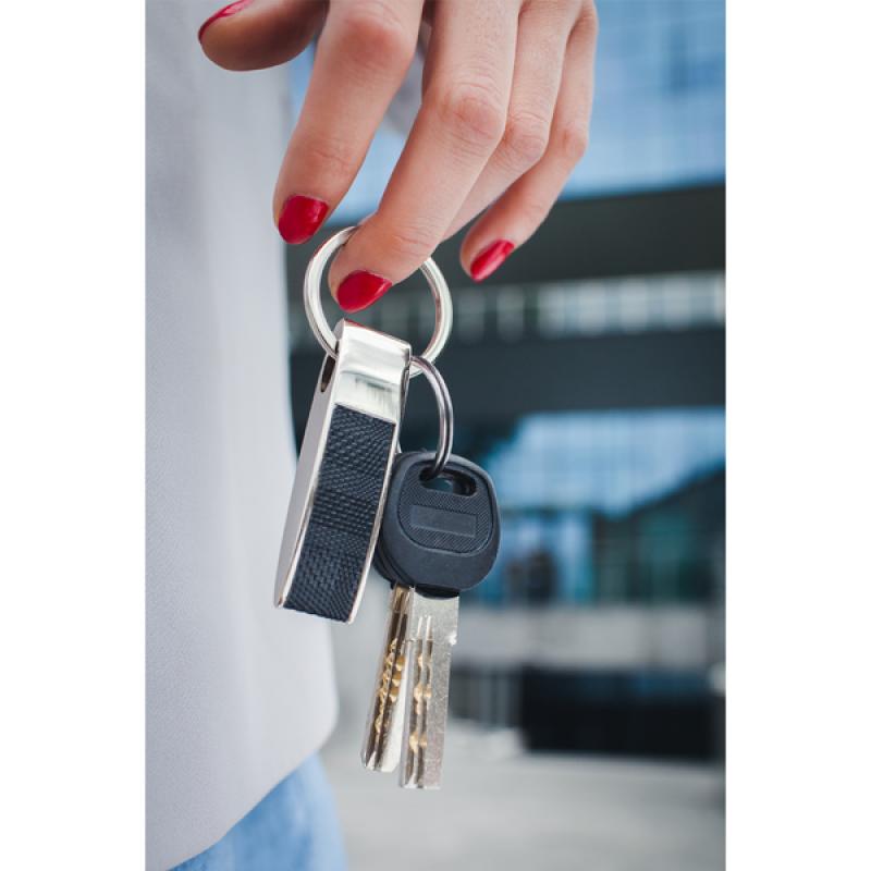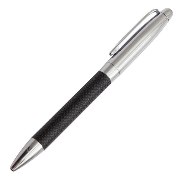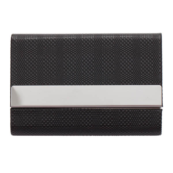 Wykonany z metalu i ekoskóry zestaw upominkowy składający się z breloka, wizytownika na 15 wizytówek i długopisu wyposażonego w niebieski wkład. Pakowany w opakowanie upominkowe.