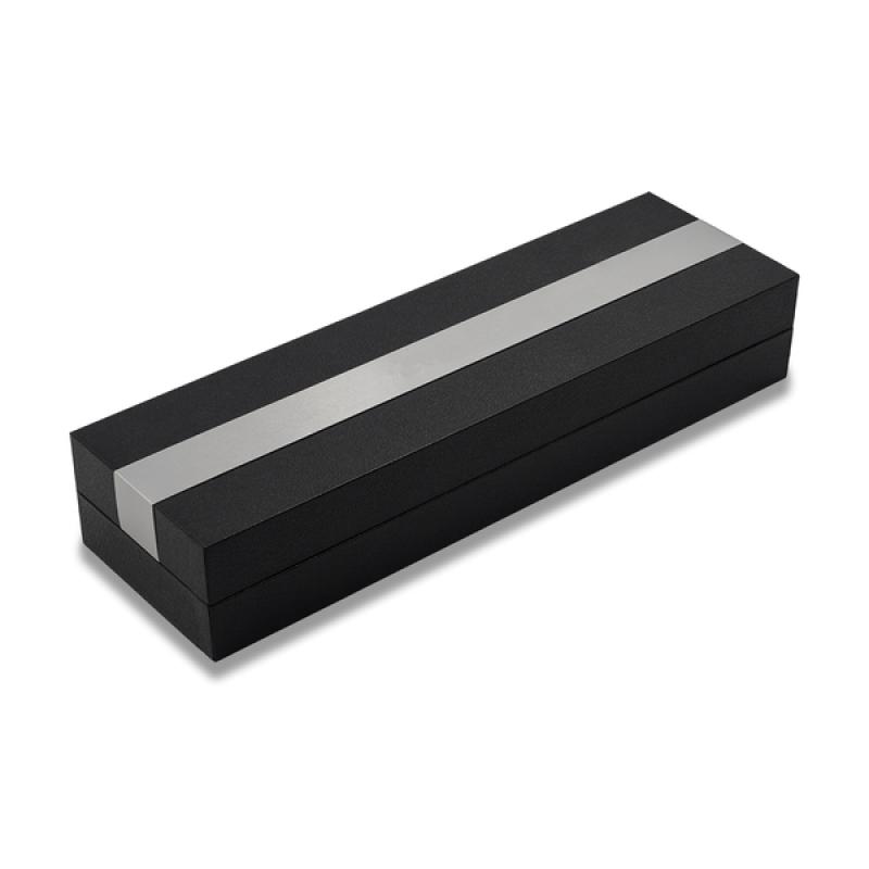 Elegancki zestaw składający się z metalowego długopisu i pióra kulkowego. Wkłady w kolorze niebieskim. Obrotowy mechanizm włączania.