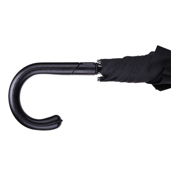 Elegancki dwuosobowy, automatyczny, wiatroodporny parasol z rączką wykonaną z wysokiej jakości ekoskóry. Pałąk, rama i żebra wykonane z włókna szklanego. Średnica 1200 mm.