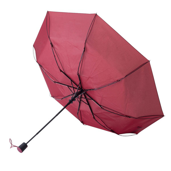 Elegancki, wiatroodporny parasol automatycznie rozkładany z elastycznym zaczepem na rękę. Rączka typu soft grip – miła i delikatna w dotyku. Pakowany w wodoodporne etui z pongee. Rama i żebra wykonane z włókna szklanego i aluminium. Pałąk z metalu. Parasol sztormowy – dzięki zastosowaniu żeber o specjalnej konstrukcji, stelaż może być wywinięty przez wiatr na drugą stronę. Średnica parasola 1000 mm.