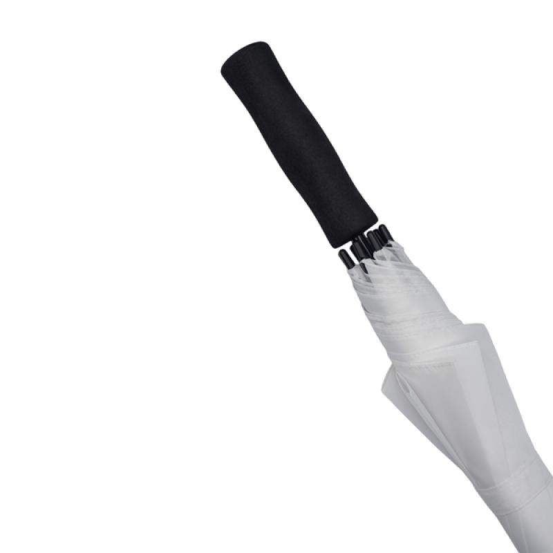 Automatycznie rozkładany parasol wykonany z poliestru 190 T. Pałąk, żebra i rama wykonane z włókna szklanego. Rączka pokryta antypoślizgową pianką EVA.