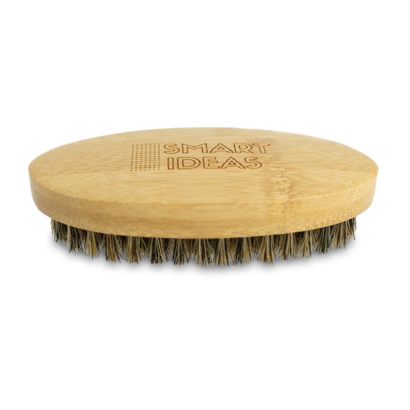 3-częściowy zestaw do pielęgnacji: szczotka do brody, grzebień oraz bawełniany woreczek, zapakowane w tekturowe pudełko.