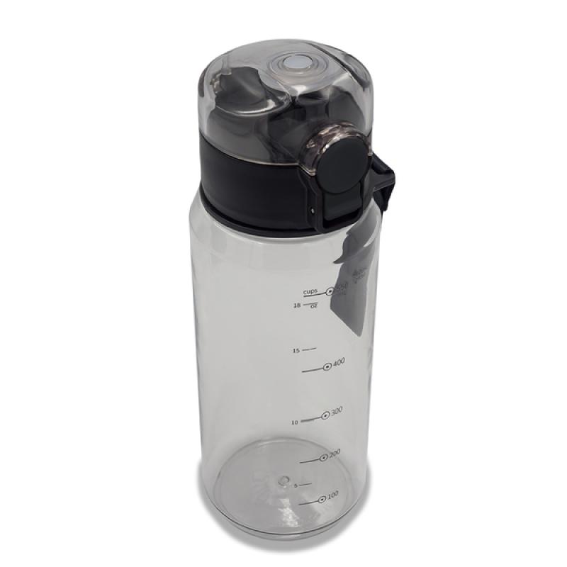 Szczelny Bidon 680 ml wykonany z tritanu. Posiada miarkę, uchwyt na nadgarstek, funkcję podwójnego zabezpieczenia przed wylaniem wody - przycisk i przesuwaną blokadę.
