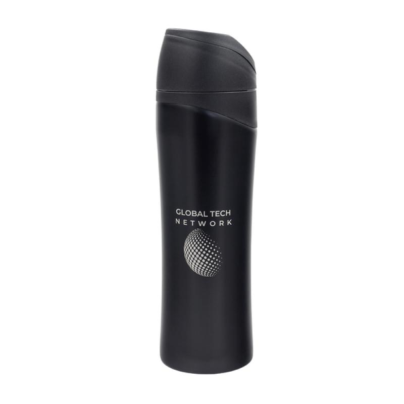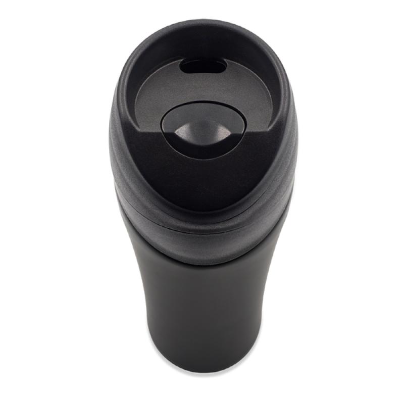 Szczelny kubek izotermiczny z dwiema ściankami ze stali nierdzewnej. Ścianka wewnętrzna wykonana z stali 18/8. Szczelne zamknięcie tylu open/close zapobiega wyciekaniu płynów. Próżnia między ściankami kubka zapewnia parametry termosu. Utrzymuje ciepło do 11 godzin.