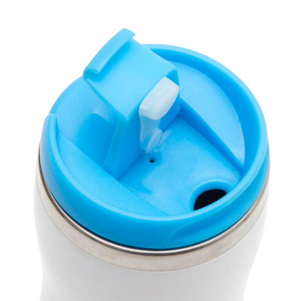 Kubek izotermiczny o pojemności 350 ml. Wewnątrz kubka zastosowano stal nierdzewną 18/8 o podwyższonej jakości, na zewnątrz plastik. Zamknięcie typu flip up sip. Podstawa kubka z pianki termoizolacyjnej. Utrzymuje ciepło do 2,5 godzin.