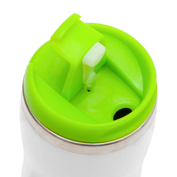 Kubek izotermiczny o pojemności 350 ml. Wewnątrz kubka zastosowano stal nierdzewną 18/8 o podwyższonej jakości, na zewnątrz plastik. Zamknięcie typu flip up sip. Podstawa kubka z pianki termoizolacyjnej. Utrzymuje ciepło do 2,5 godzin.