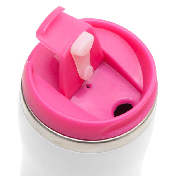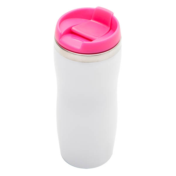 Kubek izotermiczny o pojemności 350 ml. Wewnątrz kubka zastosowano stal nierdzewną 18/8 o podwyższonej jakości, na zewnątrz plastik. Zamknięcie typu flip up sip. Podstawa kubka z pianki termoizolacyjnej. Utrzymuje ciepło do 2,5 godzin.