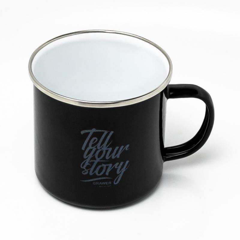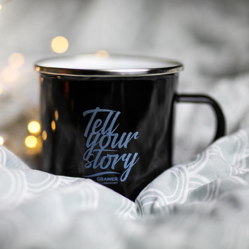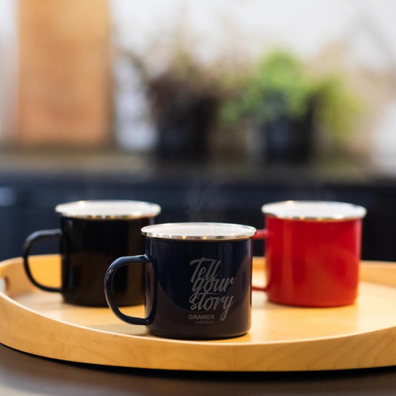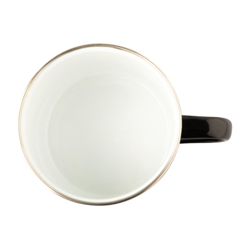 Kubek emaliowany z uchem w stylu vintage. Wykonany ze stali węglowej, rant ze stali nierdzewnej. Pojemność 500 ml.