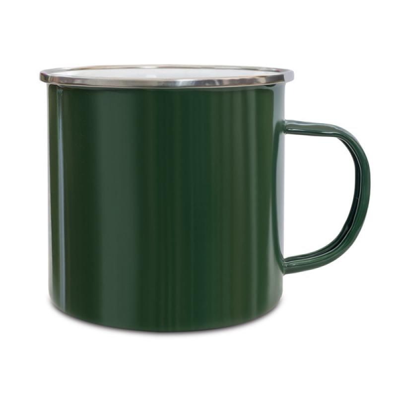 Kubek emaliowany z uchem w stylu vintage. Wykonany ze stali węglowej, rant ze stali nierdzewnej. Pojemność 500 ml.