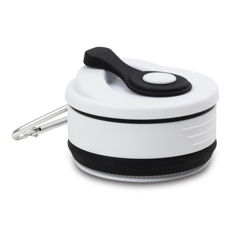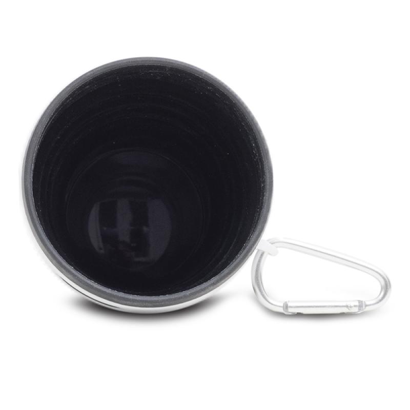 Składany kubek silikonowy 350 ml. Po złożeniu zajmuje bardzo mało miejsca, można schować go w kieszeni kurtki, wrzucić do torby lub przypiąć do plecaka. Idealny przy zakupie kawy na wynos, jak i do zabrania własnego napoju na spacer, można go też wykorzystać jako pojemnik do mrożenia.