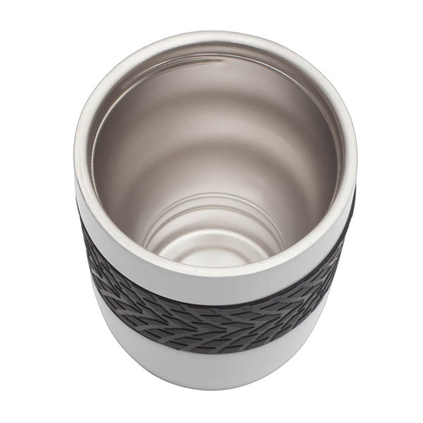 Szczelny kubek izotermiczny z ergonomiczną opaską ułatwiającą trzymanie kubka. Przyssawka umieszczona na spodzie zapobiega przypadkowemu przewróceniu się kubka. Oderwanie od podłoża przez podniesienie kubka pod kątem prostym do góry. Dwie ścianki ze stali nierdzewnej, wewnątrz stal 18/8 o podwyższonej jakości. Utrzymuje temperaturę powyżej 40°C przez 2 godziny. Posiada zamknięcie typu flip up sip i leak proof – zapobiegające wyciekaniu płynów. Pojemność 200 ml.