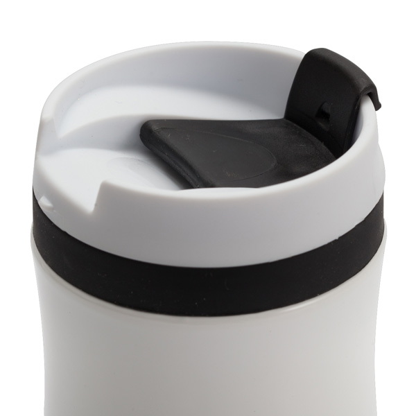 Kubek izotermiczny – o pojemności 390 ml z dwiema ściankami ze stali nierdzewnej, zewnętrzna pokryta lakierem. Wewnętrzna ścianka wykonana ze stali o podwyższonej jakości 18/8. Podstawa kubka z wodoodpornej gumy termoplastycznej TPR. Zamknięcie typu flip up sip. Utrzymuje ciepło do 7 godzin.