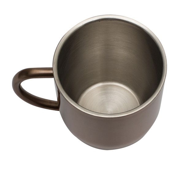 Kubek o pojemności 350 ml z dwiema ściankami ze stali nierdzewnej, wewnątrz kubka stal o podwyższonej jakości 18/8. Pokryty błyszczącym lakierem. Kształtem nawiązuje do kubków ceramicznych.