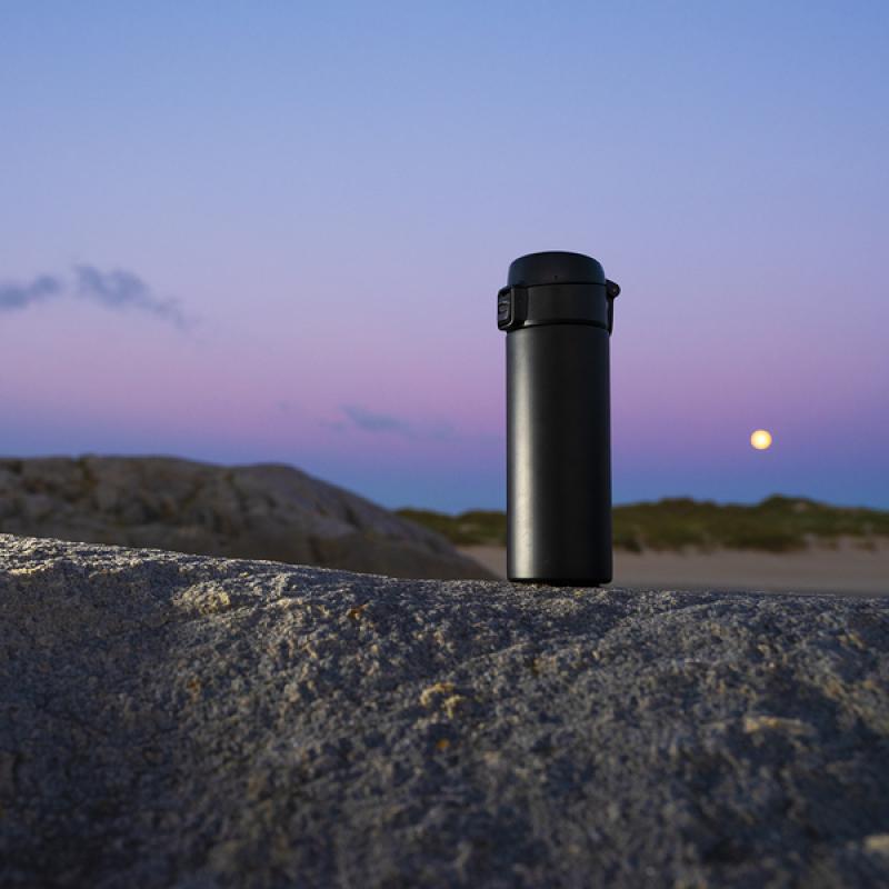 Wyjątkowy, próżniowy kubek o pojemności 500 ml. Utrzymuje temperaturę powyżej 40°C przez 16 godzin. Nowoczesna technologia unbolt&press stanowi podwójne zabezpieczenie przed przypadkowym wylaniem napoju. Szczelne zamknięcie typu leak proof. Dwie ścianki ze stali nierdzewnej, zarówno wewnątrz jak i na zewnątrz zastosowano stal nierdzewną 18/8 o podwyższonej jakości. Podstawa kubka z silikonu. Produkt klasy premium.
