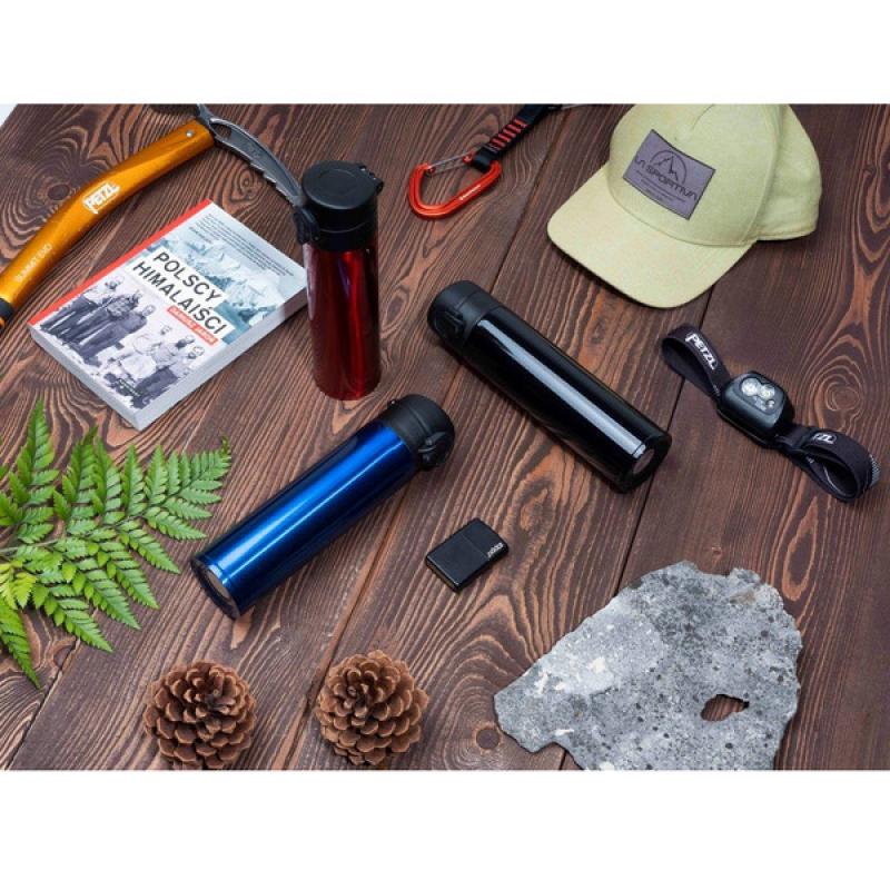 Szczelny kubek izotermiczny o pojemności 350 ml. Dwie ścianki ze stali nierdzewnej, wewnątrz stal 18/8 o podwyższonej jakości. Próżnia pomiędzy ściankami zapewnia bardzo dobre właściwości termoizolacyjne. Utrzymuje temperaturę powyżej 40°C przez 14 godzin. Posiada oryginalny mechanizm podwójnego zabezpieczenia przeciw wylaniu płynu: szczelne zamknięcie – leak proof zapobiegające wyciekaniu płynów oraz blokadę zamknięcia, która chroni przed przypadkowym wylaniem napoju.