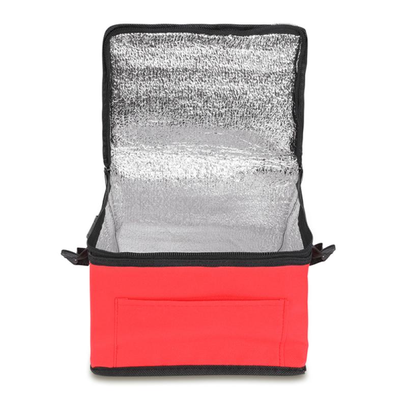 Praktyczna torba na lunch z materiału non-woven o gramaturze 80 g/m2. Posiada izolację termiczną, zapięcie na suwak, przednią kieszeń i wygodny pasek na ramię. Wewnątrz izolowana jest pianką oraz srebrną folią termiczna. Torba idealna do pakowania i przewożenia posiłku do szkoły lub biura. Zabierz ją ze sobą na plażę a Twoje napoje pozostaną chłodne na dłużej.