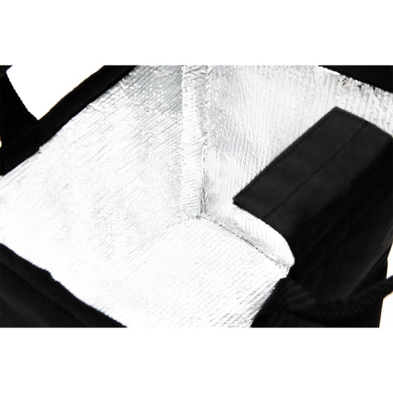 Pojemna torba termoizolacyjna, idealna na piknik, jak również do przenoszenia posiłków do pracy lub szkoły. Lekka, wewnątrz wykończona folią termoizolacyjną, która utrzymuje temperaturę posiłków. Wyposażona w dwa uchwyty, zamykana na rzep.