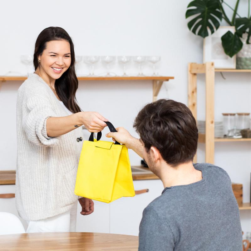 Pojemna torba termoizolacyjna, idealna na piknik, jak również do przenoszenia posiłków do pracy lub szkoły. Lekka, wewnątrz wykończona folią termoizolacyjną, która utrzymuje temperaturę posiłków. Wyposażona w dwa uchwyty, zamykana na rzep.