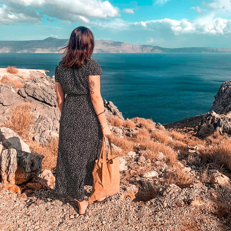 Naturalna, solidna korkowa torba na zakupy, wytworzona z dbałością o środowisko naturalne. Długie uchwyty. Korek ulega biodegradacji, a także może być poddany procesowi recyclingu.