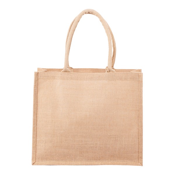 Ekologiczna torba na zakupy wytworzona z juty, z dbałością o środowisko naturalne. Bawełniana rączka. Torba wewnątrz laminowana. Uprawy juty pochłaniają duże ilości dwutlenku węgla, nie wymagając przy tym nawadniania ani nawożenia. Produkt może być poddany procesowi recyklingu. Szerokość klina 15 cm.