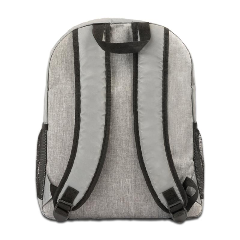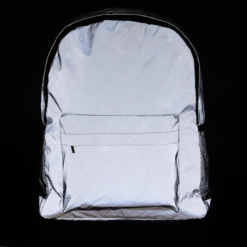 Plecak wykonany z materiału odbijającego światło. Zwiększa widoczność po zmroku. Posiada komorę główną, kieszeń na laptop 14", dwie boczne kieszonki oraz kieszeń przednią zapinaną na zamek. Usztywniane plecy zwiększające komfort noszenia.