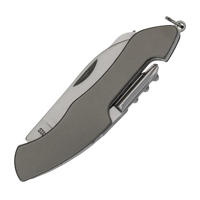 Zestaw składający z latarki z 9 diodami i noża wielofunkcyjnego składającego się z 11 elementów (nóż, piła, skrobak do ryb, nożyczki, otwieracz do butelek, otwieracz do puszek, dziurkacz, pilnik do paznokci, śrubokręt krzyżakowy, korkociąg, dłuto). Całość spakowana w kraftowe pudełko. Baterie w komplecie.