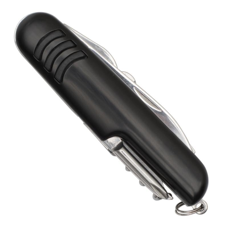 Zestaw składający się z 9-funkcyjnego scyzoryka z ostrzem ze stali nierdzewnej oraz latarki z karabińczykiem. Latarka zasilana jest 4 bateriami typu LR41 (dołączone). Zestaw zawiera nóż, wkrętak PH krzyżowy, pilnik, korkociąg, wkrętak płaski, otwieracz do butelek, nożyczki, otwieracz do konserw oraz oczko do troczenia. Pakowany w upominkowe opakowanie.