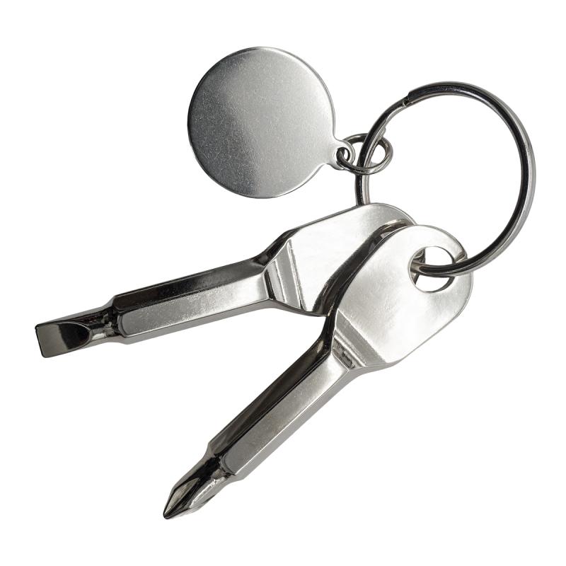 Poręczny brelok z miniaturowym śrubokrętem - płaskim i krzyżakowym (Phillips). Posiada zawieszkę idealną pod grawer.