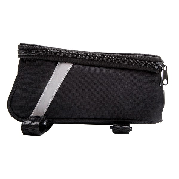 Torebka z przegródką na smartfon do zamontowania na ramę roweru. Zwiększa widoczność rowerzysty dzięki odblaskowym elementom. Umożliwia korzystanie z funkcji dotykowych telefonu przez folię. Telefon nie jest dołączony.