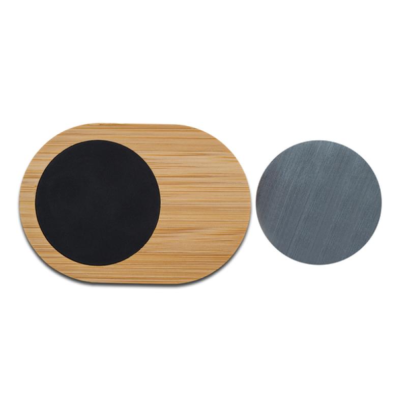 Uchwyt na telefon wykonany z bambusa. Montowany do kratki wentylacyjnej w samochodzie. W zestawie z metalową płytką przyklejaną do telefonu za pomocą taśmy.
