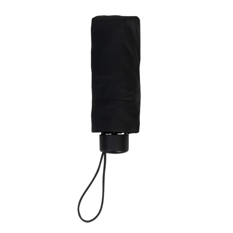 Składany parasol, ręcznie otwierany i zamykany. Rama i pałąk wykonane z metalu, żebra z włókna szklanego. Rączka wyposażona w opaskę i uchwyt. Pakowany w usztywniane etui. Lekki i kompaktowy.