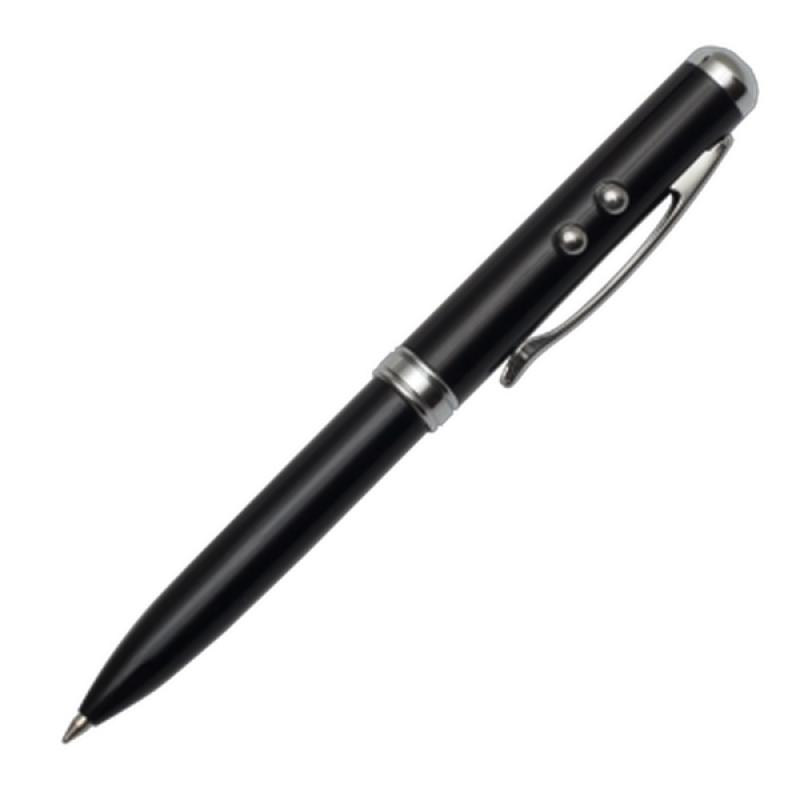 Długopis ze wskaźnikiem laserowym, latarką LED oraz końcówką przystosowaną do obsługiwania ekranów dotykowych. Dołączone baterie 3 x LR41. Pakowany w srebrne aluminiowe opakowanie upominkowe.