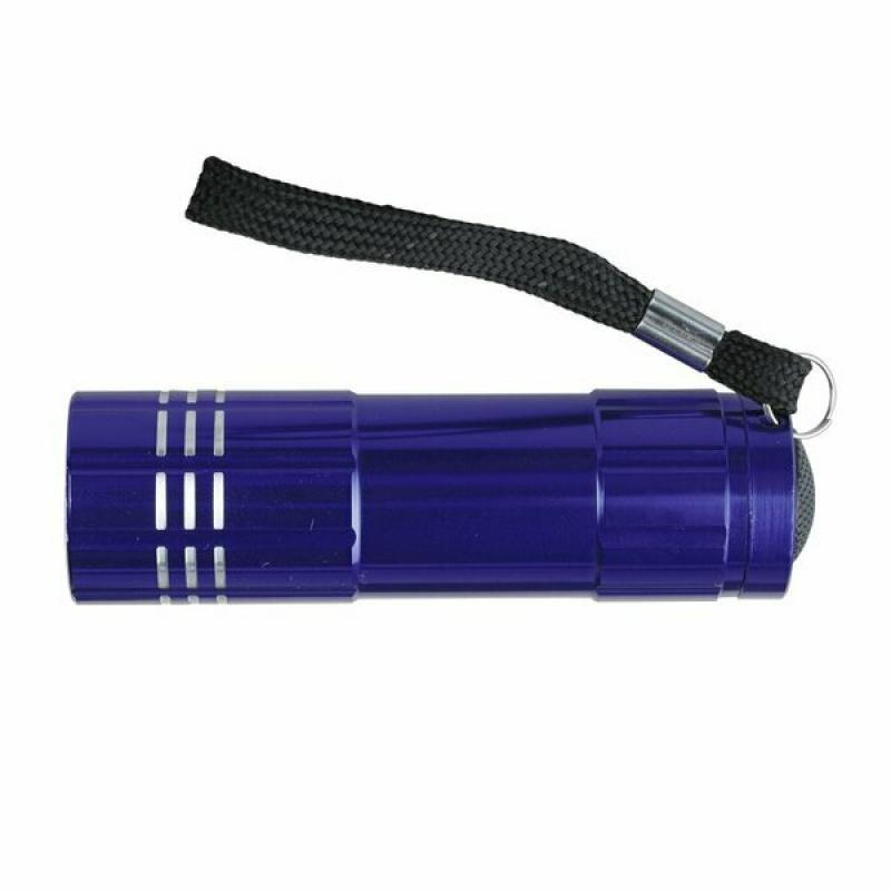9 diodowa latarka LED wykonana z aluminium. Zasilana 3 bateriami AAA (dołączone).