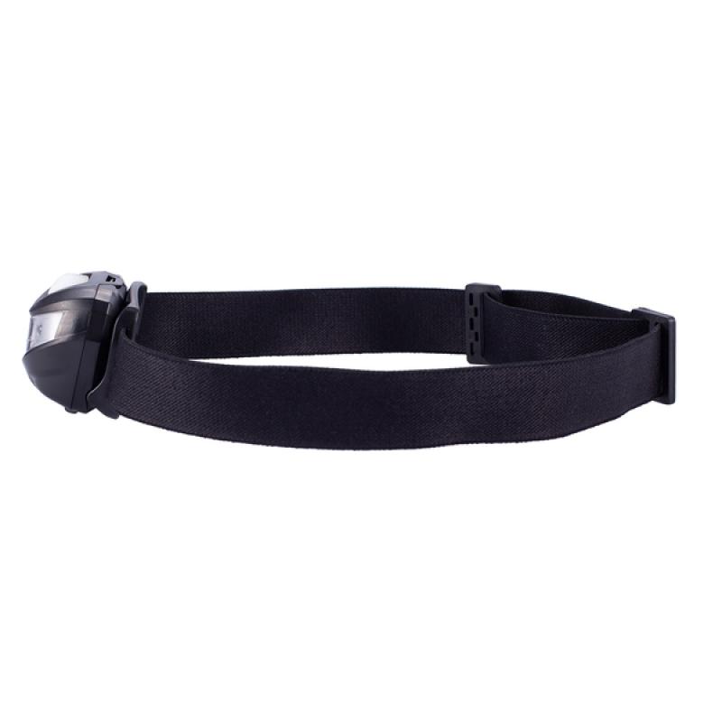 Latarka czołowa o strumieniu światła 80 lumenów. Dioda CREE 3 W, regulacja kąta nachylenia (36°), oświetlana odległość: 20 m. Regulowany pasek na głowę/kask/czapkę. Zasilana akumulatorem 1200 mAh Li-ion. Latarka posiada czujnik ruchu. Funkcja ta pozwala na oświetlenie miejsca pracy lub otoczenia bez zajmowania rąk, co znacząco wpływa na komfort wykonywanych czynności.