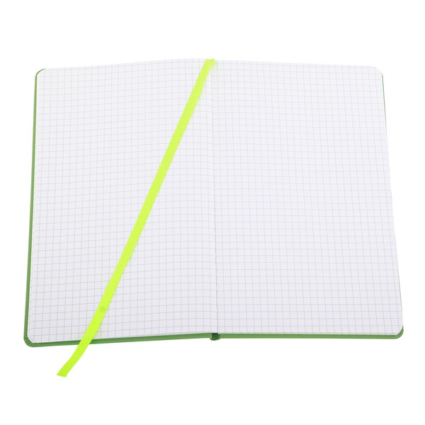 Notatnik w twardej oprawie z elastyczną gumką chroniącą wnętrze. Papier kremowy chamois w kratkę o gramaturze 70 g/m2 o wymiarze 13 x 21 cm, 80 kartek, tasiemka do zaznaczanie ostatniej zapisanej strony. Rozmiar biurkowy.