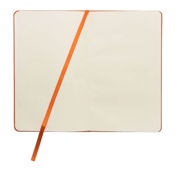 Notatnik w twardej oprawie z elastyczną gumką chroniącą wnętrze. Papier kremowy chamois w kratkę o gramaturze 70 g/m2 o wymiarze 13 x 21 cm, 80 kartek, tasiemka do zaznaczanie ostatniej zapisanej strony. Rozmiar biurkowy.