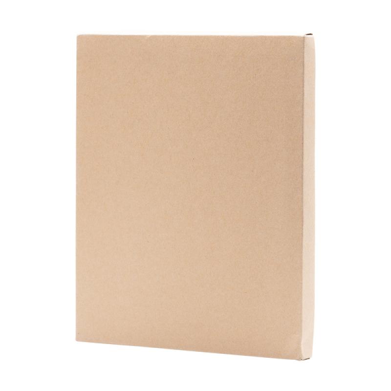 Zestaw korkowy składający się z notesu o wymiarach: 14 x 21cm (gramatura 1250 g), 80 kartek w linie 70 g/m2 oraz korkowego długopisu. Pakowany w kartonowe pudełko.