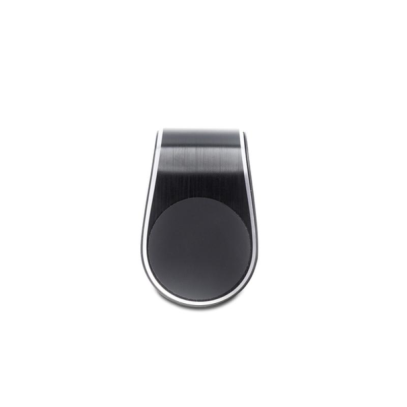 Magnetyczny uchwyt na telefon montowany do kratki wentylacyjnej samochodu. W zestawie samoprzylepna metalowa blaszka do telefonu.