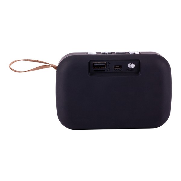 Stylowy głośnik w technologii Bluetooth 4.2, która zapewnia czyste połączenie, skutkujące najwyższą jakością dźwięku. Posiada wbudowane radio FM oraz przyciski sterujące odtwarzaniem dźwięku. Wyposażony w funkcję odbierania połączeń telefonicznych, porty na kartę micro SD, USB. Moc wyjściowa: 3 W. Wbudowany akumulator litowo-jonowy o pojemności 400 mAh. Czas odtwarzania 2-3 godziny. Ładowanie: DC 5V micro USB (kabel w zestawie), czas ładowania: do 1,5 godziny. Zasięg do 10 m.
