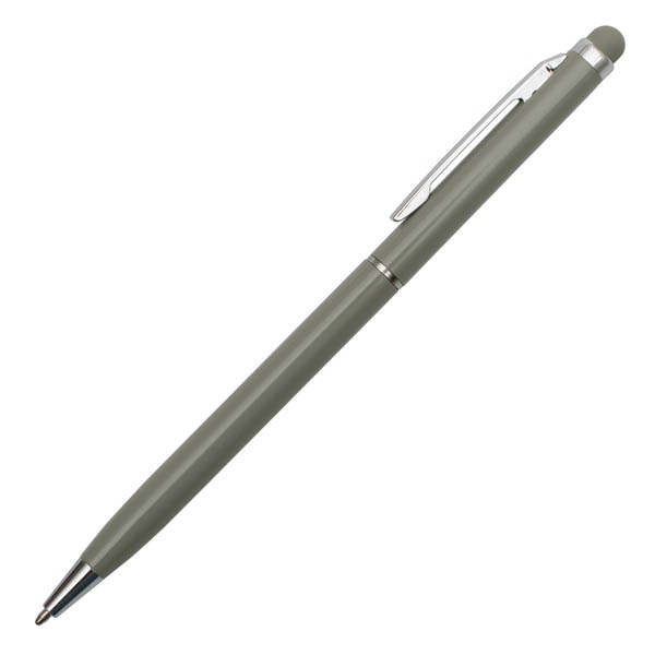 Długopis z końcówką przystosowaną do ekranów dotykowych. Korpus wykonany z aluminium, skuwka z metalu. Wkład w kolorze niebieskim. Posiada obrotowy mechanizm włączania.