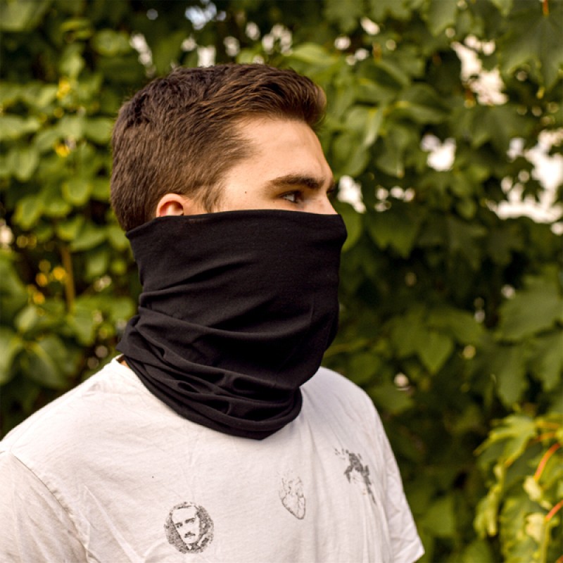 Wielofunkcyjny komin z wykonany z przyjemnej w dotyku dzianiny. Może także służyć jako osłona szyi, ust, nosa, a także jako okrycie głowy.