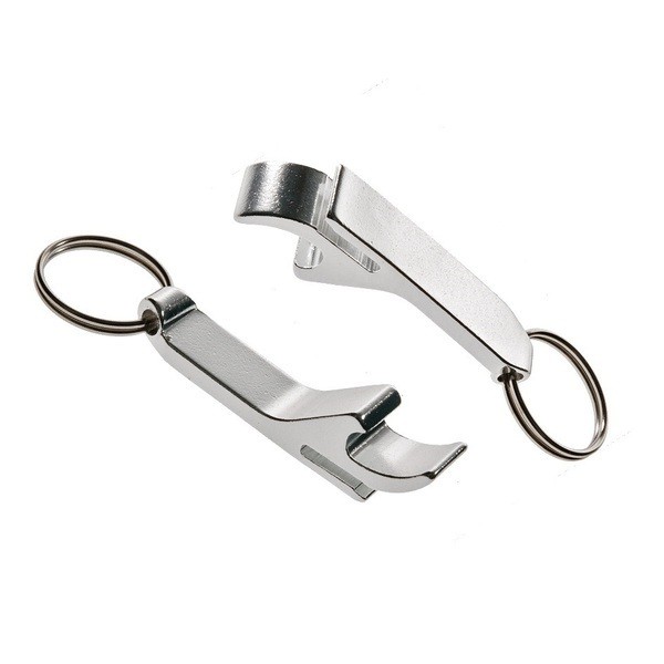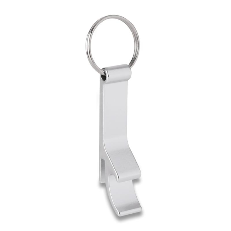 Aluminiowy brelok - otwieracz do butelek o ciekawym kształcie.