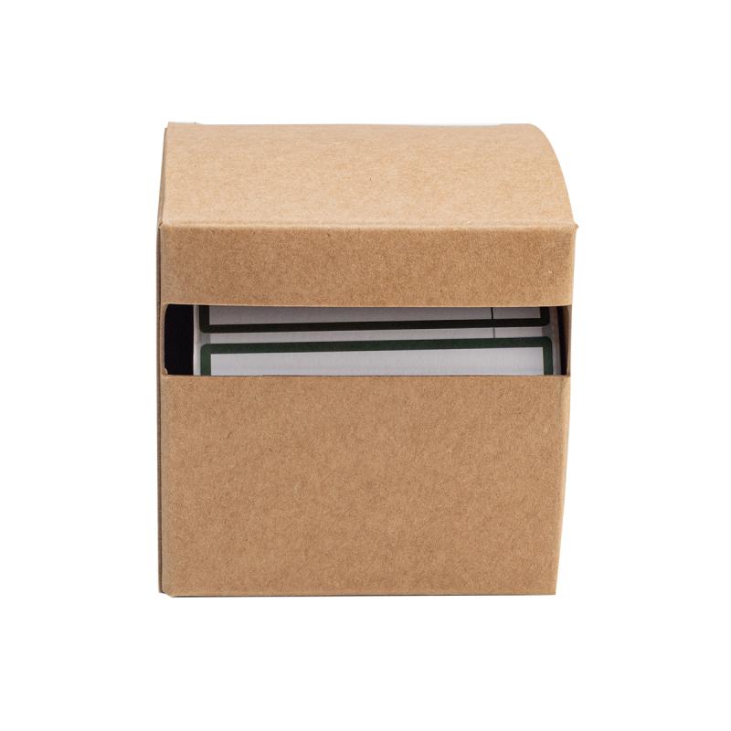 Praktyczny zestaw karteczek samoprzylepnych zawierający 250 arkuszy w rozmiarze 70 × 55 mm. Całość zapakowana w pudełko z papieru kraftowego. Memo naklejki wysuwane są przez otwór w pudełku. Przydatne zarówno w domu jak i burze.