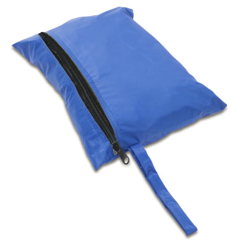 Solidna, przeciwdeszczowa peleryna z kapturem. Wykonana z tafty poliestrowej z powłoką PVC. Gramatura 200 g/m2. Przeszycia podklejone gumową taśmą. Pakowana w zapinany pokrowiec wykonany z tego samego materiału. Idealna na rower lub spacer z psem w deszczowe dni.
